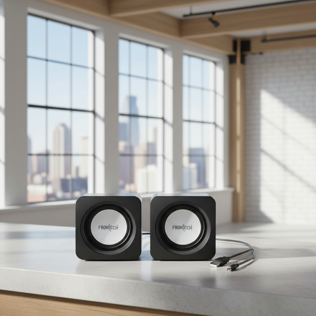 Frontech Multimedia Speaker SPK-0002BLK is an affordable and reliable desktop speaker system suitable for home, office, or educational use. Designed with a 2.0-channel stereo configuration, this speaker delivers balanced sound with clear highs and decent bass for everyday listening.