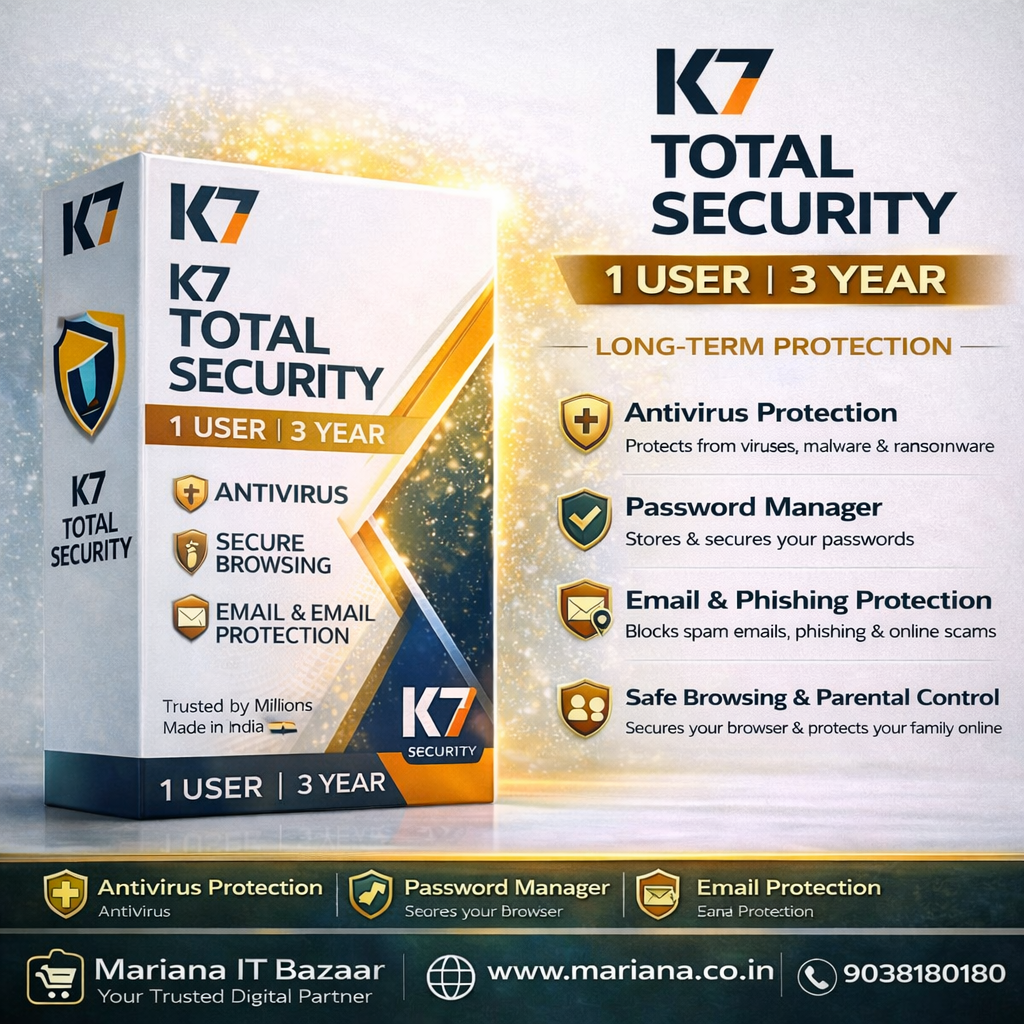This all-in-one security software combines antivirus, internet security, and advanced protection features to safeguard your digital life. With real-time threat detection, K7 continuously monitors your system and blocks harmful threats before they can cause damage.