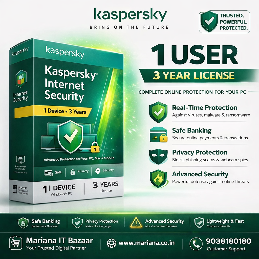 Kaspersky Internet Security 1 User 3 Year is a powerful and reliable cybersecurity solution designed to protect your PC from all types of online threats for an extended period of 3 years. It offers advanced protection against viruses, malware, ransomware, phishing attacks, and hackers.