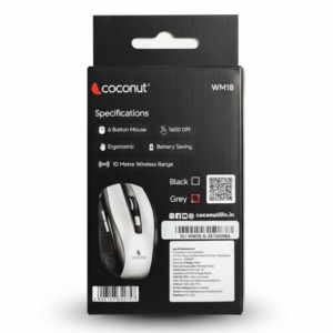 The Coconut Cheer Wireless Mouse WM18 is designed to deliver reliable wireless performance with comfort and simplicity. Built for everyday computing needs, this wireless mouse offers smooth cursor control, easy connectivity, and an ergonomic design suitable for long working hours.