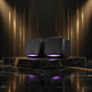 A highlight of this speaker is its multicolor RGB LED lighting, which adds a stylish visual effect to your desk setup while listening to music or watching videos. The speaker also includes a volume control knob for convenient sound adjustment.